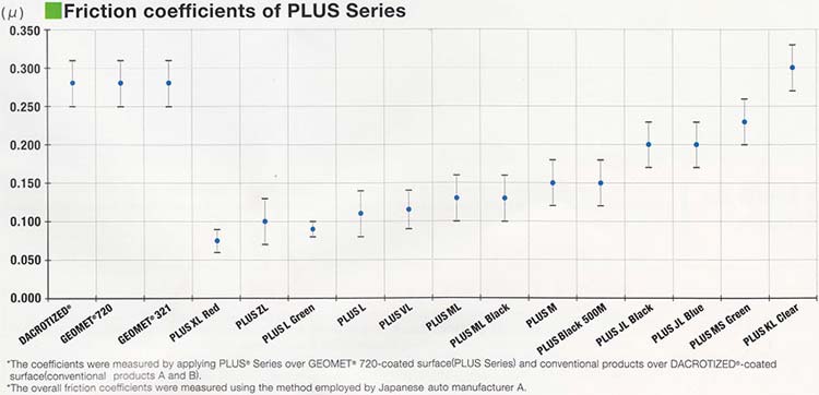 Realization of consistent friction coefficient. Choose an applicable specification from a qide selection in order to achieve a stable friction coefficient for GEOMET coated.